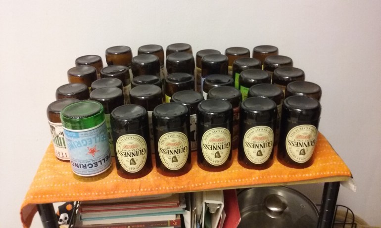 In December I decided I wanted to make candles out of recycled glass bottles (wine, liquor, beer, soda pop, water, anything!). Mostly because I had a ton of leftover soy wax from making teacup candles for my wedding. *Note to self: Talk about my wedding budget and creative crafts (a future post!!) Anywho….my lovely husband Kevin got me a bottle cutter for Christmas, I think he did it so he can “help” by drinking beer. But also a little part inside me was craving more DIY after the wedding. So here is a tutorial type post on Glass Bottle Cutting 101.