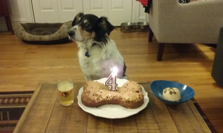 Lafayette turned 4 (time flies), yes, she is adopted. And no, we don’t know exactly when she was born but we have a rough idea. Everyone deserves a birthday, and with the little information we could gather, we picked one for her! We celebrate her birthday every year, and eventually when we have a house with a yard, she’ll have a full on birthday bash!